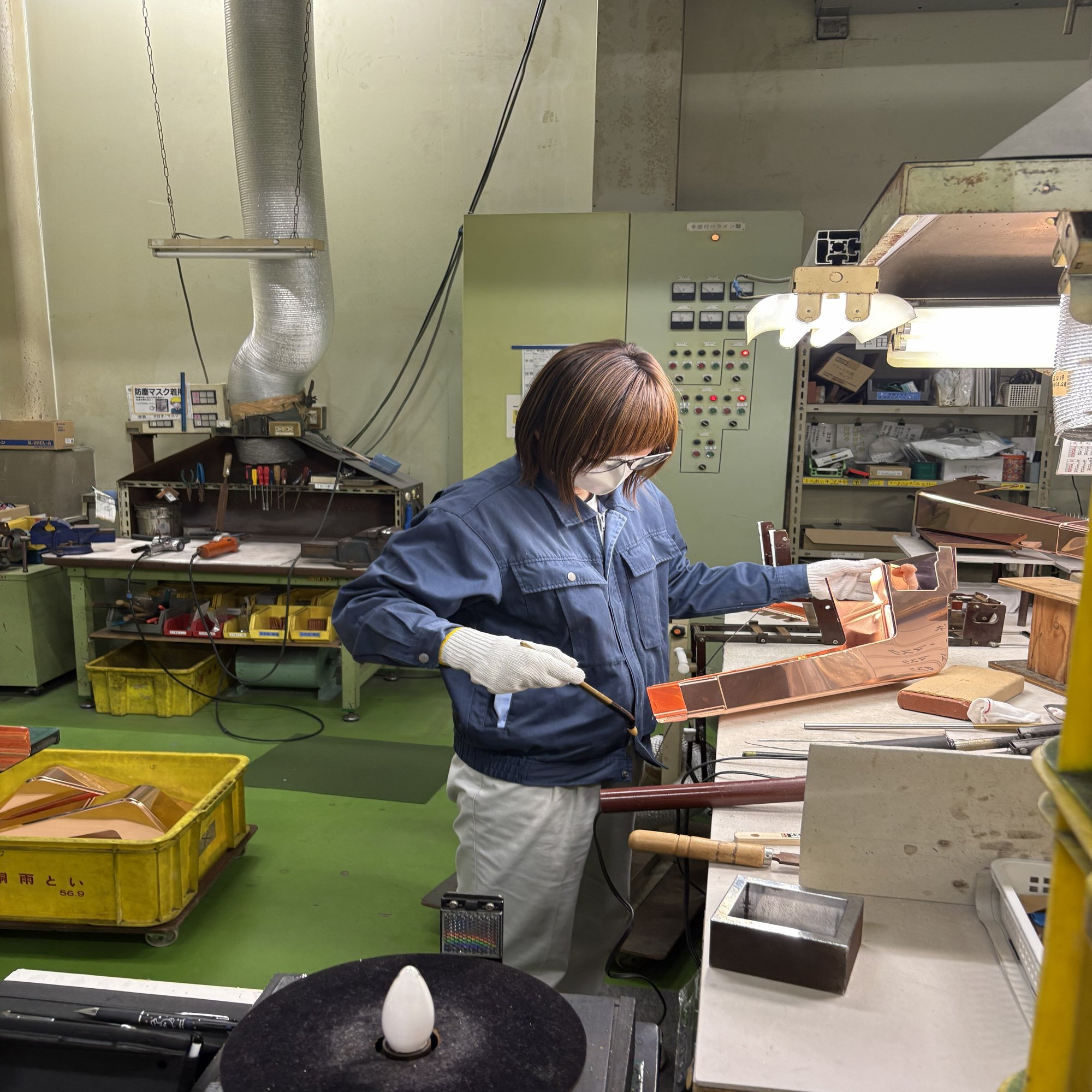 驚いたのは、製品の最終チェックです。10年以上の経験を持つベテランの方々が、一本一本の雨樋を指先でなぞり、目で見極めて傷や歪みを確認していました。機械化が進んでも、最後は「人の感覚」が品質を決める。谷田社長の「うちは銅を叩いてきた手仕事の文化がベースにある」という言葉は、同じ職人として胸に熱いものが込み上げました。
