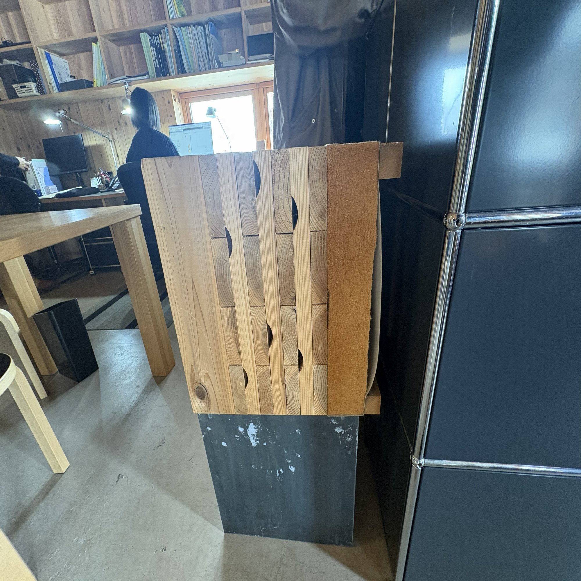 断熱材についても、ただ厚くすれば良いという考え方ではありません。ここではコストを加味して200mm厚のグラスウールが使われていましたが、佐藤さんが強調されていたのは断熱材の「コシ」です。木は生きていますから、乾燥すれば必ず動きます。その動きにぴったりと追従し、隙間を作らない弾力性。オーストリアから取り寄せたという、トウモロコシ成分で固めた自然由来の断熱材は、手で触れるとその粘り強い質感がよくわかりました。